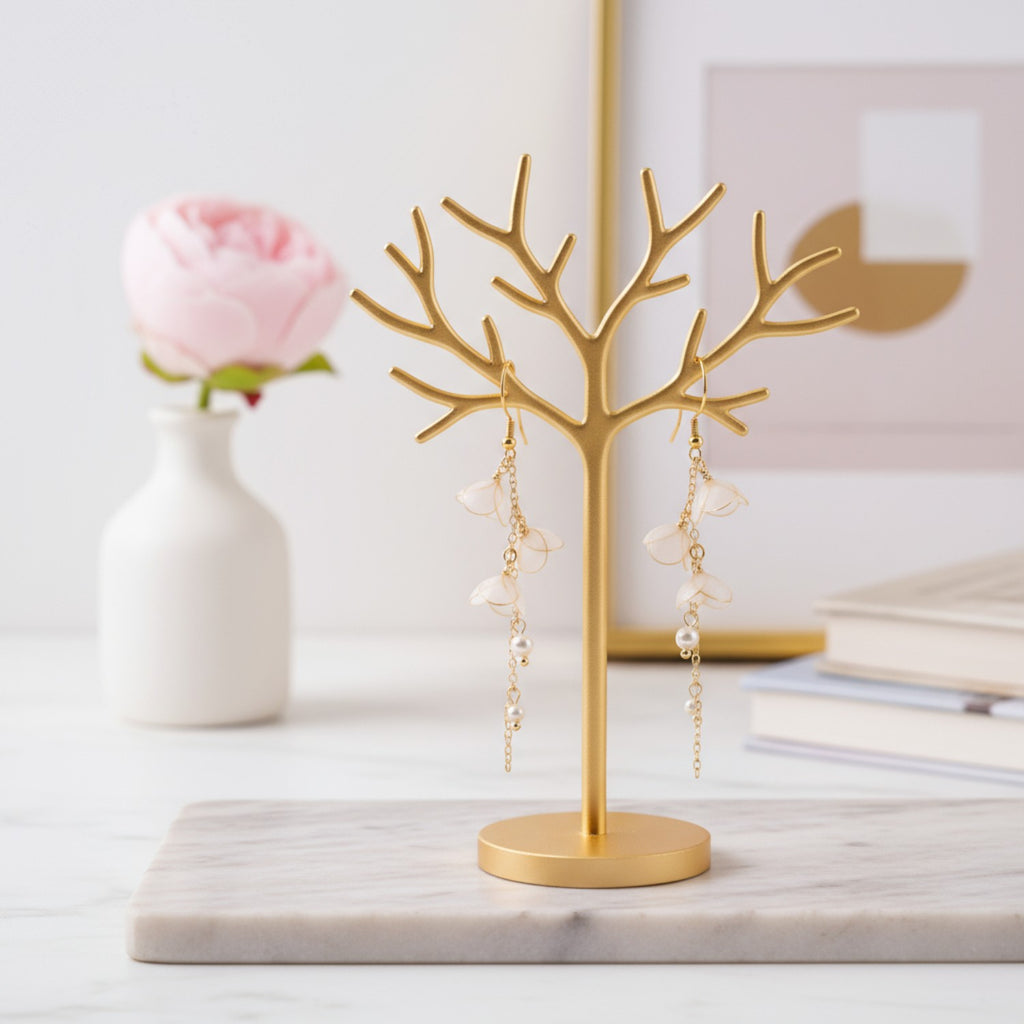 White Cherry Blossom Wire Waterfall Earrings