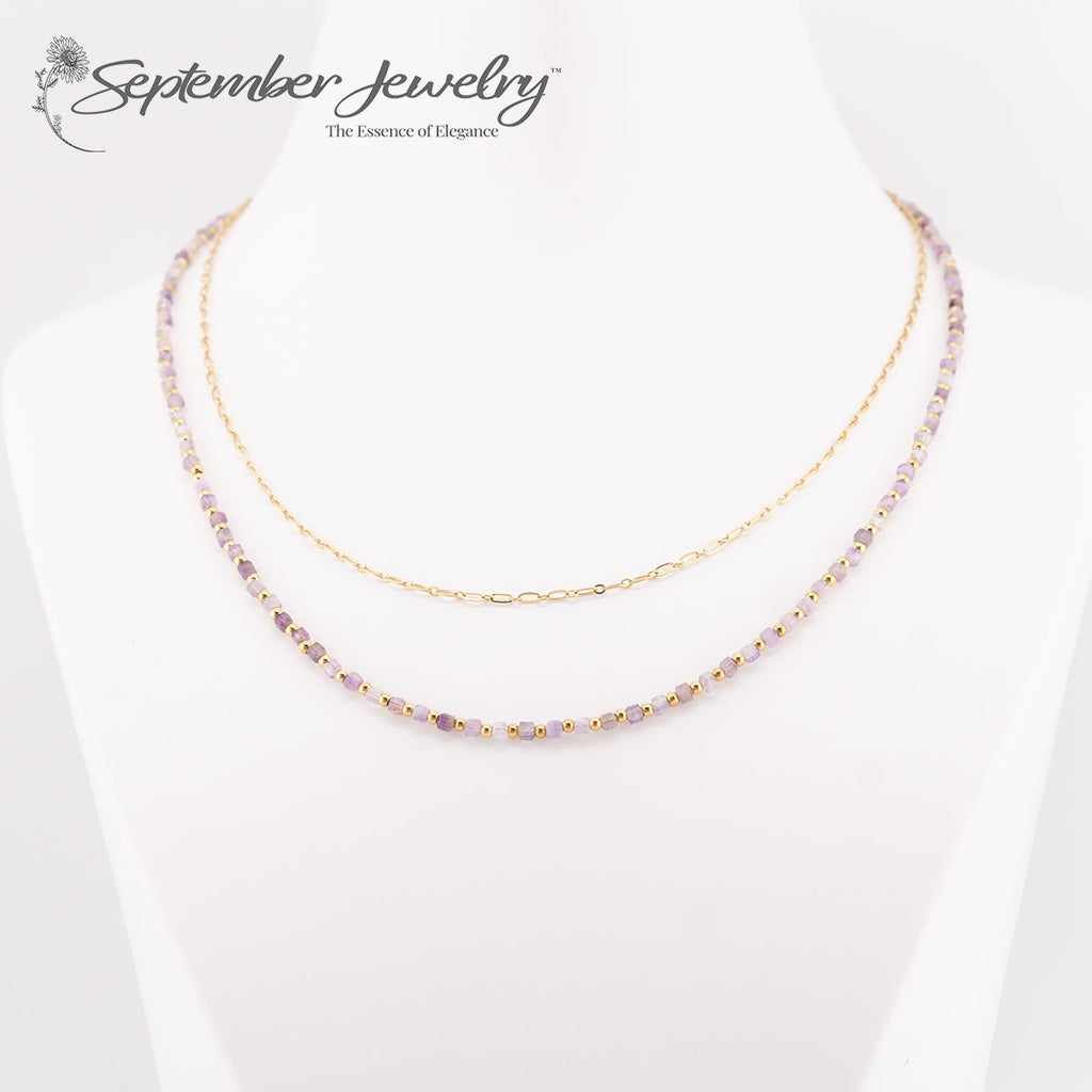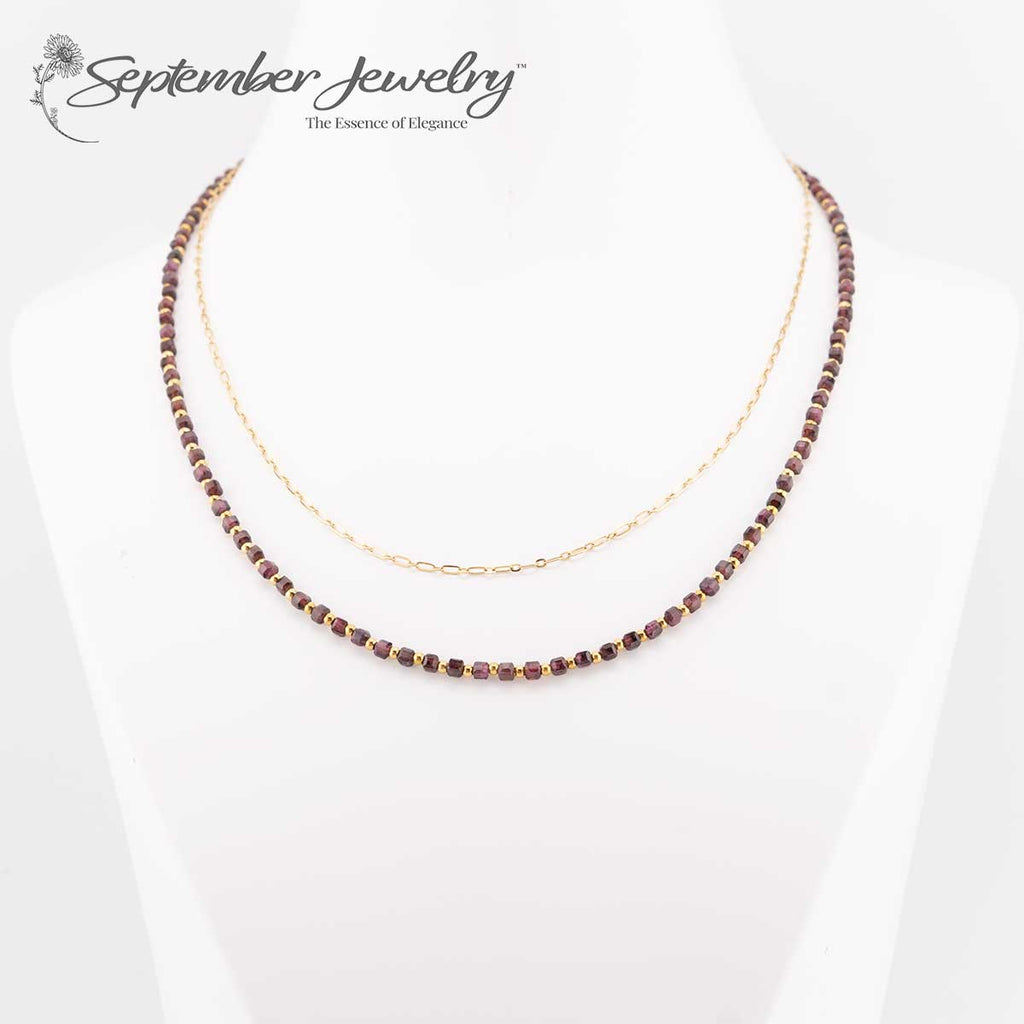 Stacked Garnet Gemstone Necklace with 14k Gold Plated Chain – 16 inch + 2 inch Extension