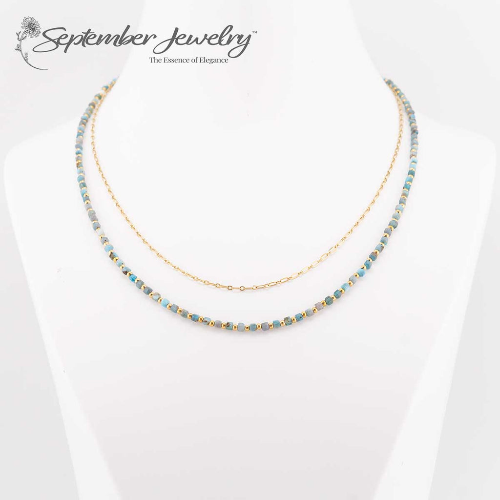 Stacked Chain Blue Apatite Necklace – 14k Gold Plated – 16 inch + 2 inch Extension