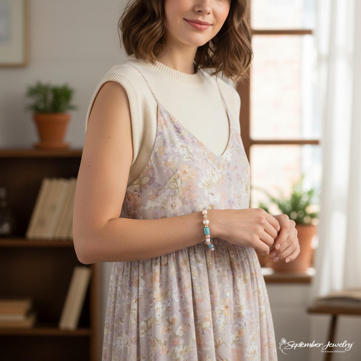 This exquisite bracelet combines calming blue and pastel tones with the elegance of pearls and gold, creating a versatile and meaningful accessory. Whether you seek emotional harmony, balance, or simply a beautiful statement piece, this bracelet is designed to bring both beauty and positive energy into your life. Perfect for any occasion, it’s a lovely addition to any jewelry collection.