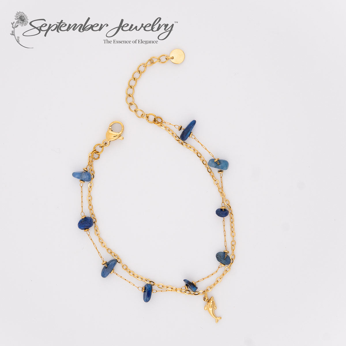 Blue Kyanite Double Chain Bracelet with Pendant – 14K Gold Plated Stainless Steel | 6.5" + 2" Extension