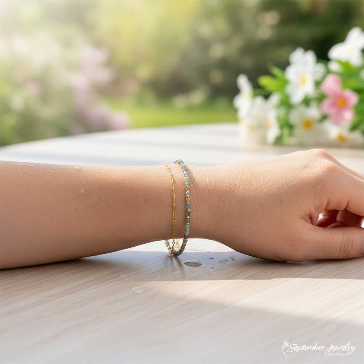 Double Chain Blue Apatite Bracelet – 14K Gold Plated Stainless Steel | 6.5" + 2" Extension