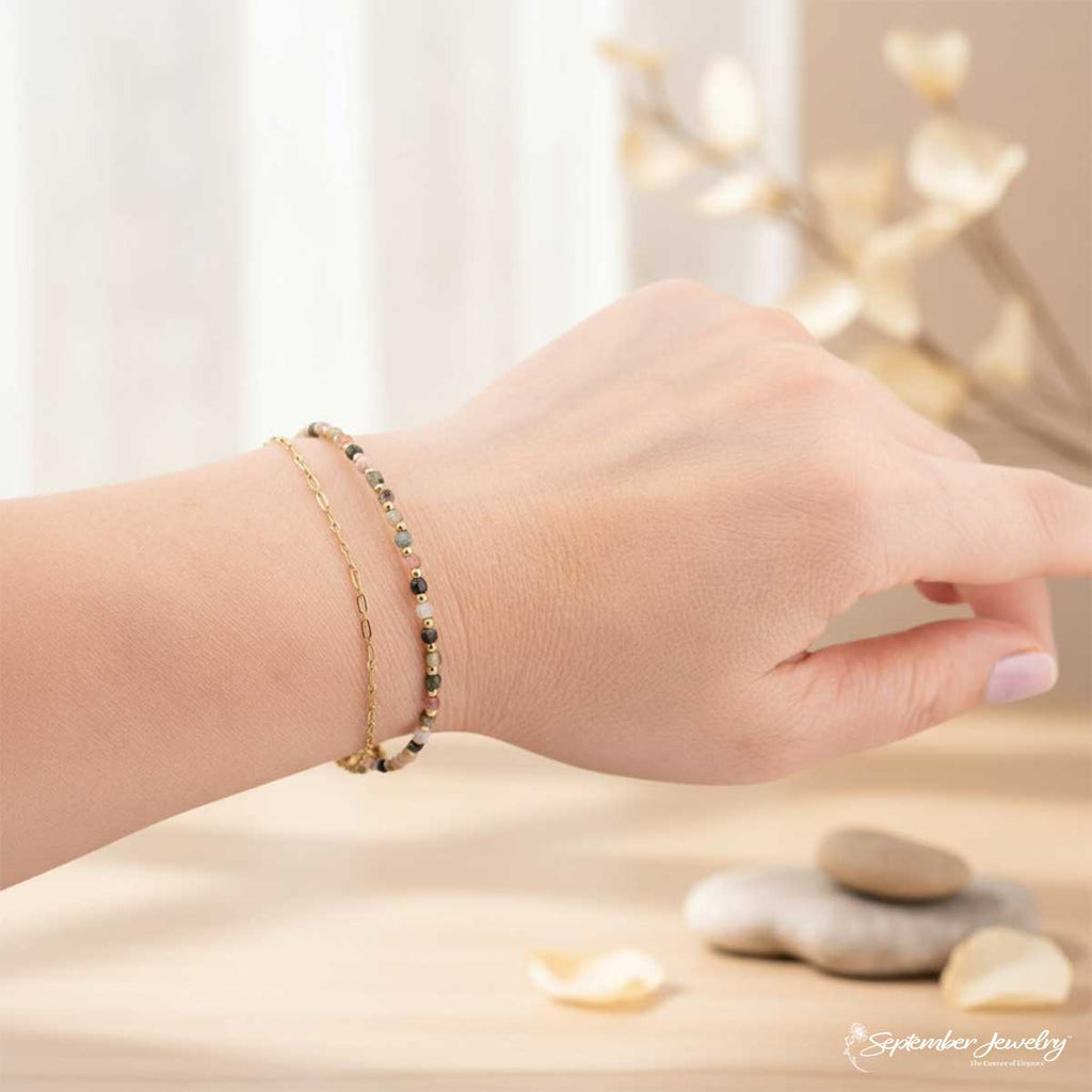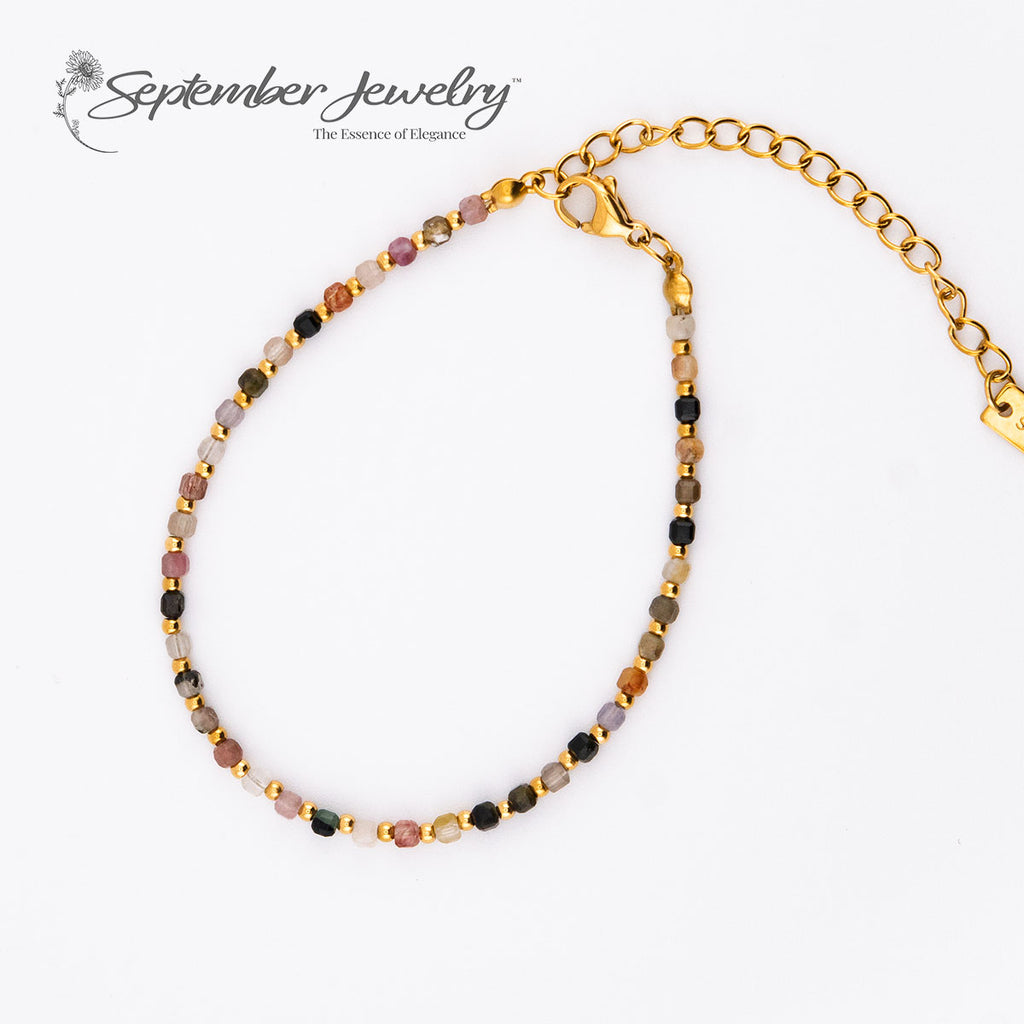 Multi-Color Tourmaline Gemstone Bracelet – 14K Gold Plated Stainless Steel | 6.5" + 2" Extension