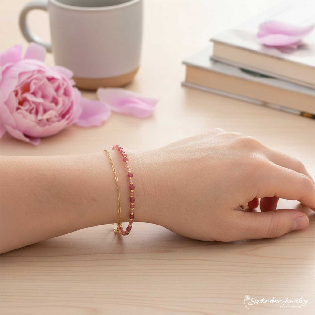 Ruby and Tourmaline Bracelet – 14K Gold Plated Stainless Steel | 6.5" + 2" Extension