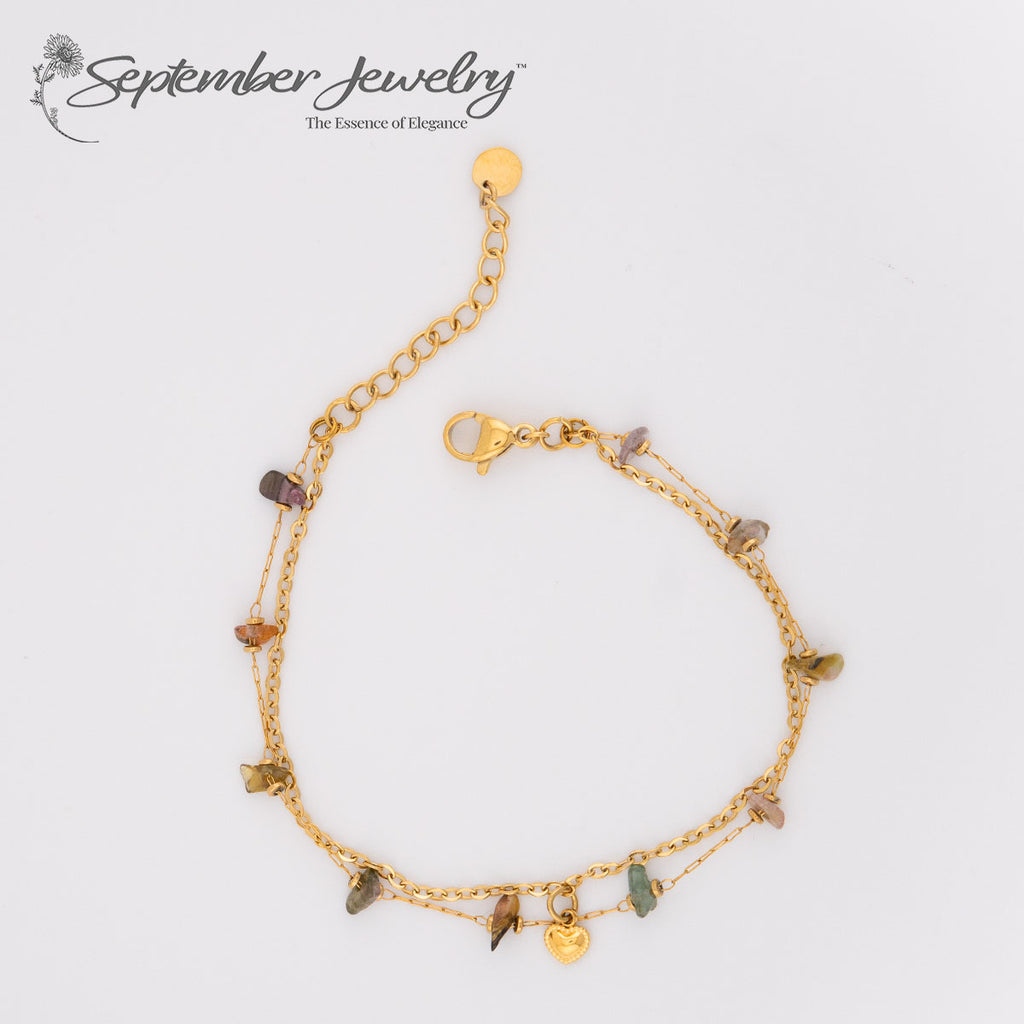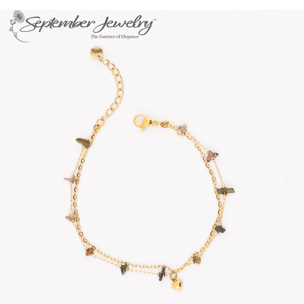 Multi-Color Tourmaline Double Chain Bracelet – 14K Gold Plated Stainless Steel | 6.5" + 2" Extension