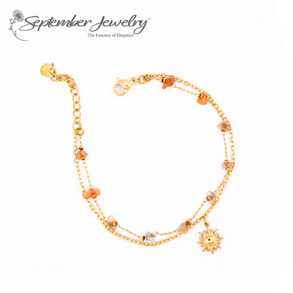 Sunstone Double Chain Bracelet with Pendant – 14K Gold Plated Stainless Steel | 6.5" + 2" Extension