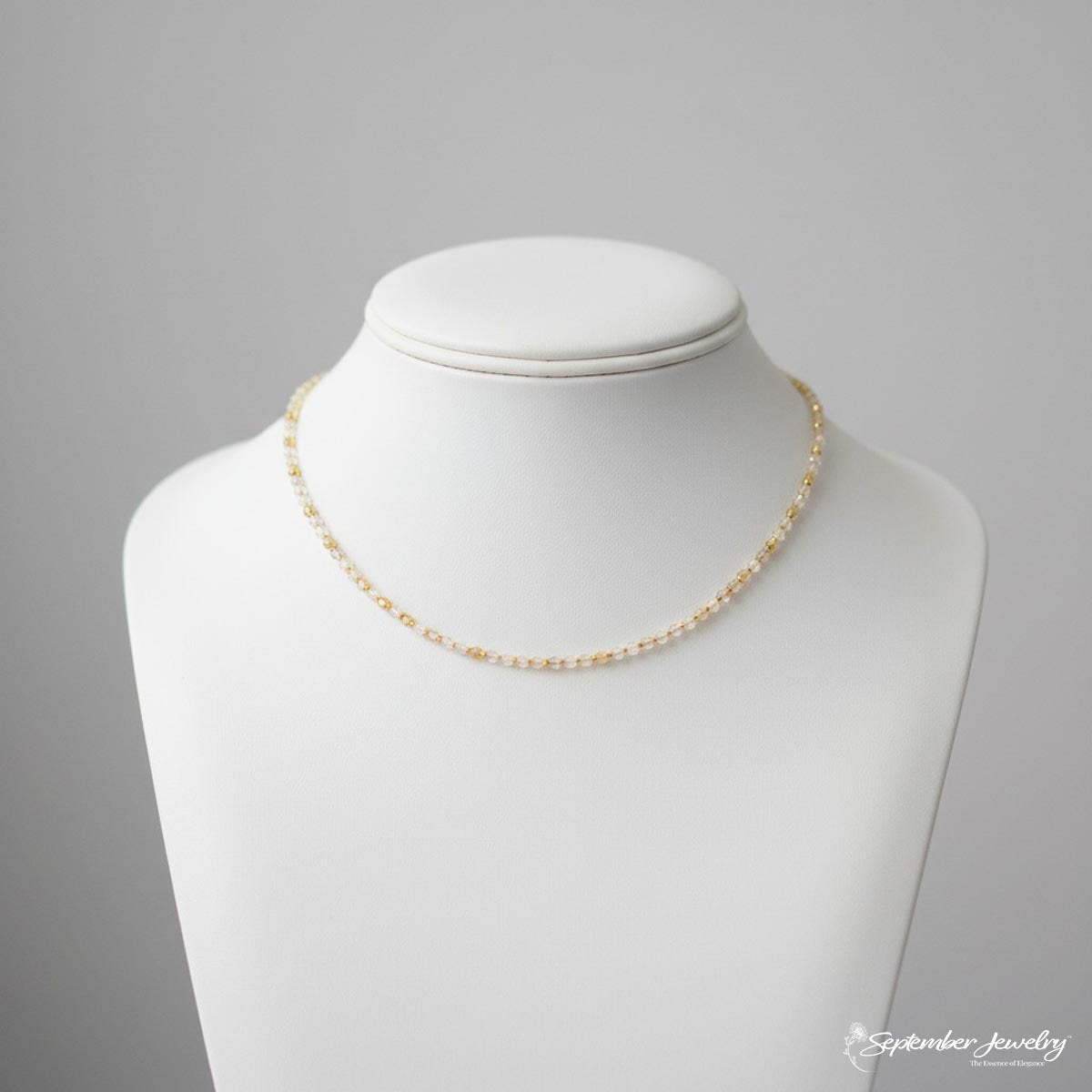 Citrine Necklace with Gold Plated Beads 16.5 inch + 1 inch Extension