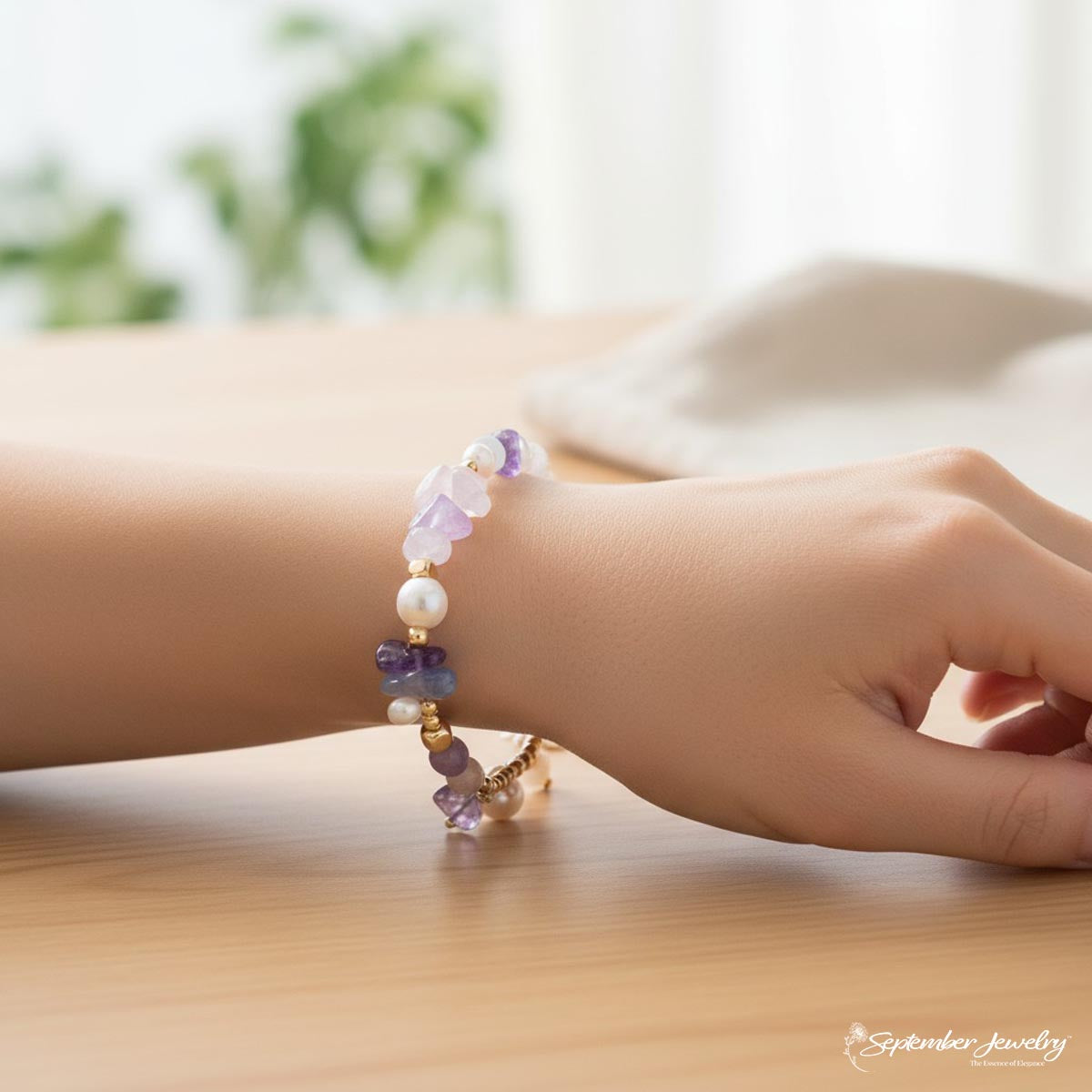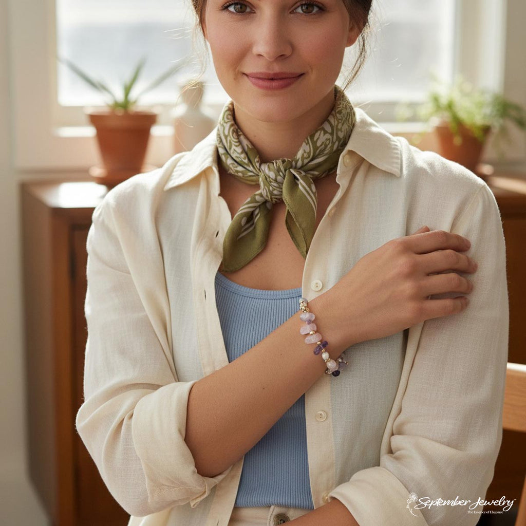 Pink & White Freshwater Pearls: Pearls symbolize purity, serenity, and wisdom. The combination of pink and white pearls offers a balance of love, harmony, and inner peace, adding a timeless charm to the bracelet.