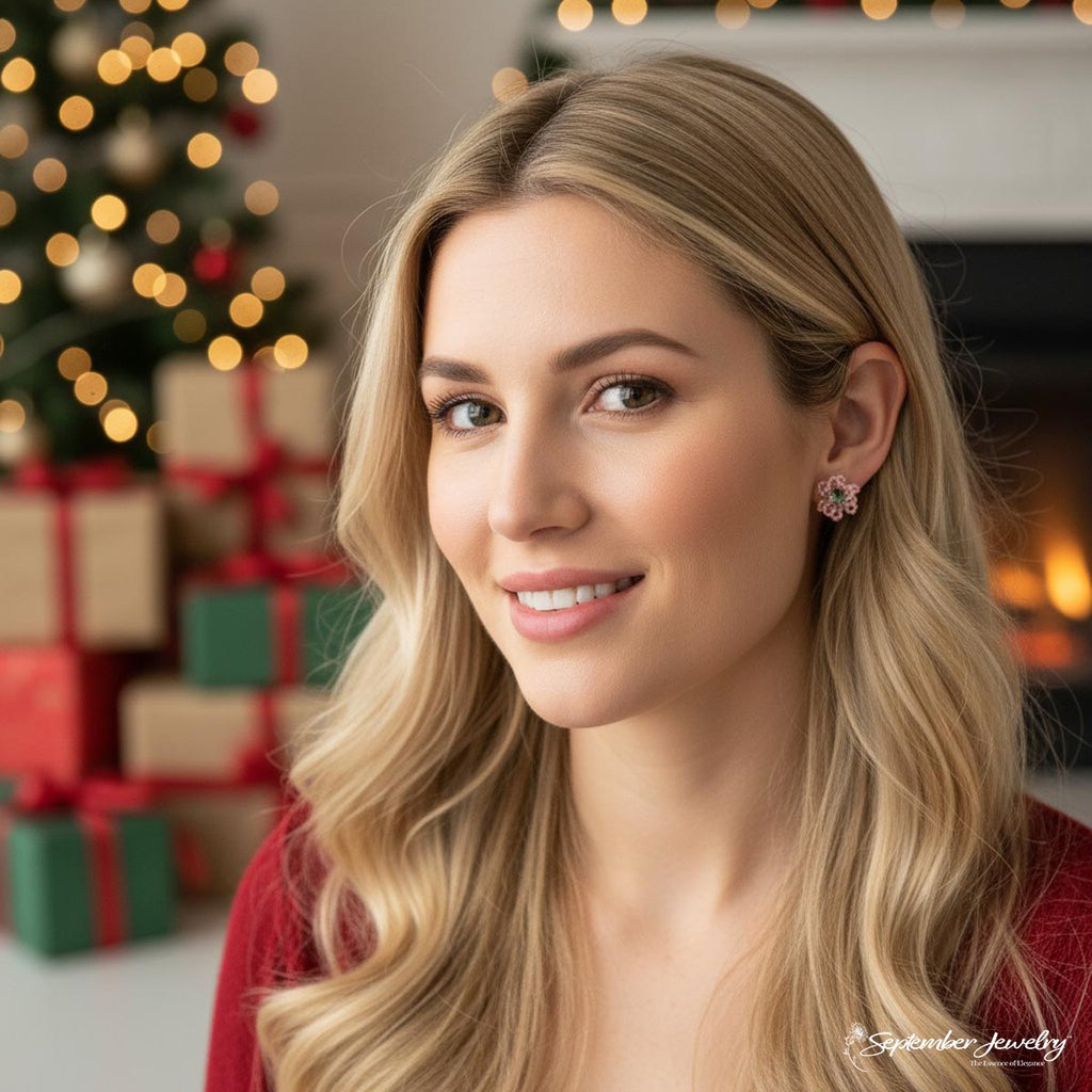 Elegant yet playful, these earrings bring a hint of color and celebration to your winter wardrobe. The delicate floral details glow with the soft radiance of the season, perfect for both gifting and personal wear.