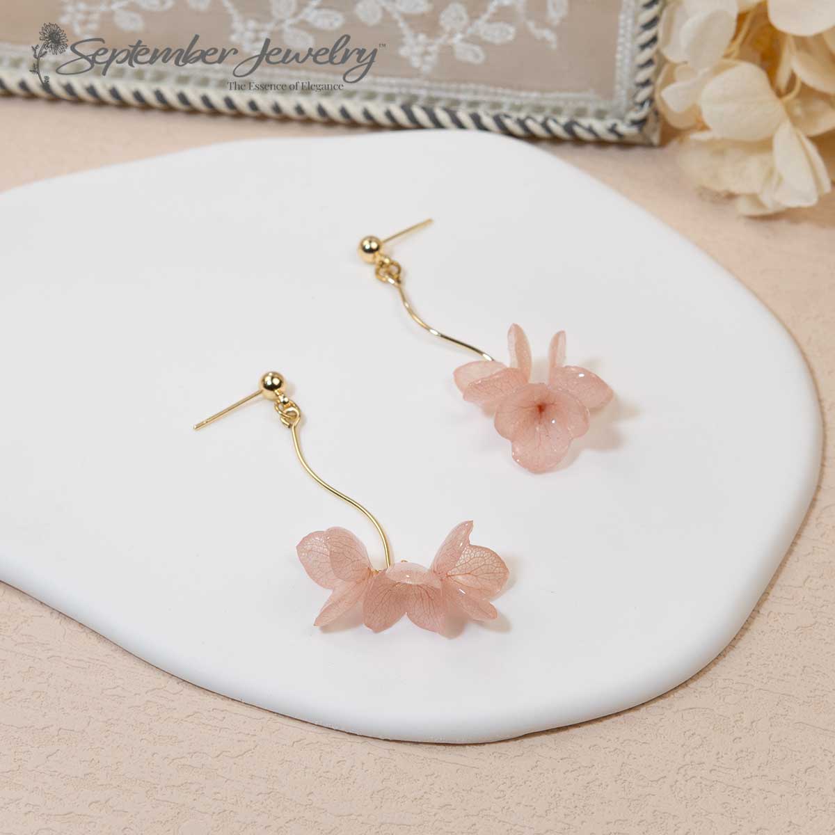 Each piece is handmade with real flowers. Natural variations in shape and color make every pair beautifully unique.
