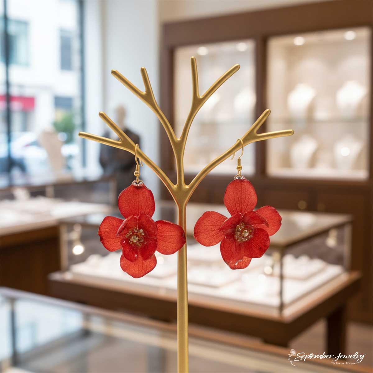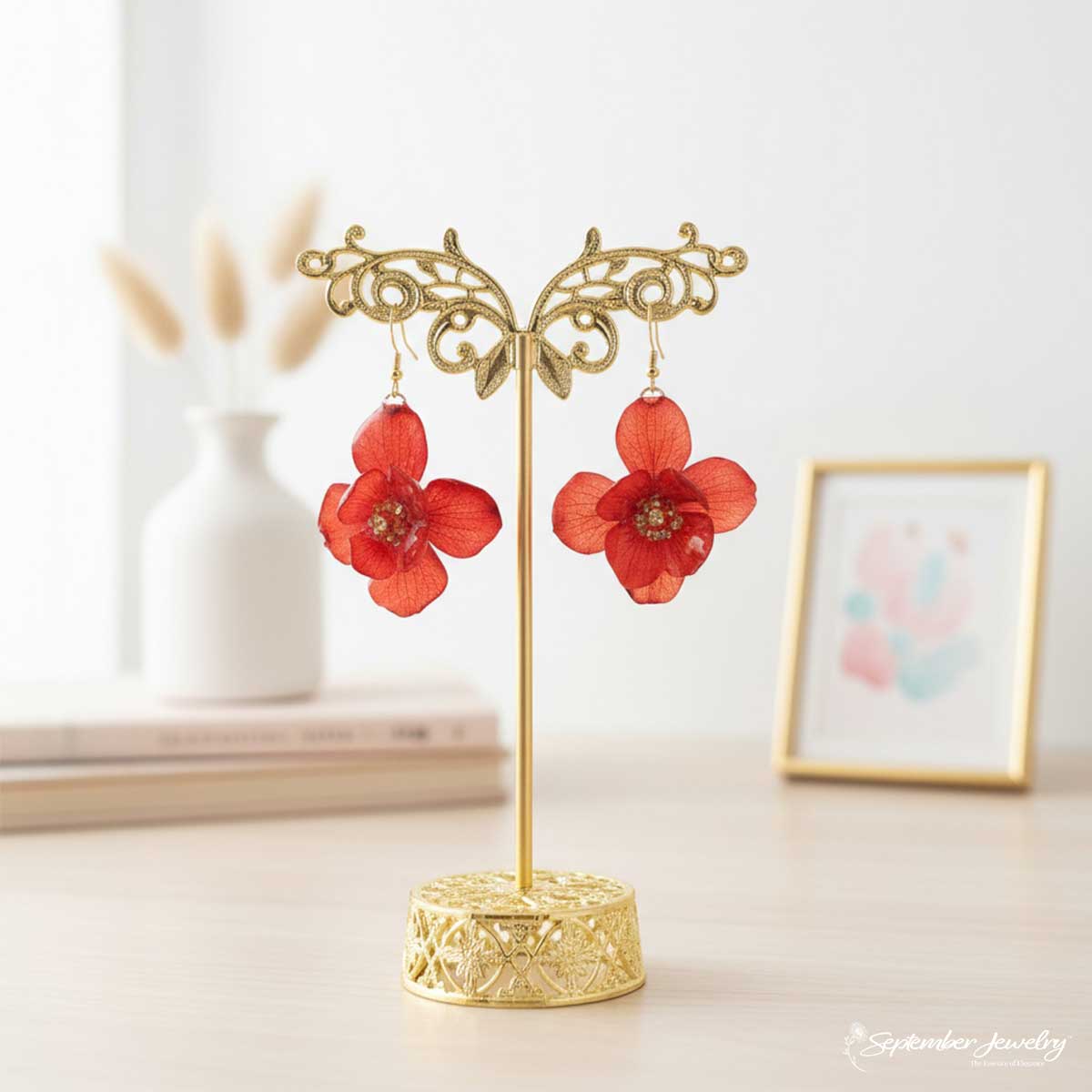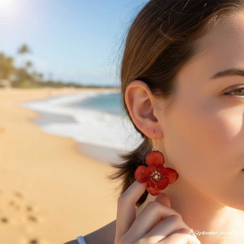 These earrings blend the organic beauty of hydrangea petals with a sophisticated design that feels both powerful and refined. The deep red tone adds a romantic touch to any outfit, making them perfect for evenings, celebrations, or whenever you want to feel beautifully self-assured.