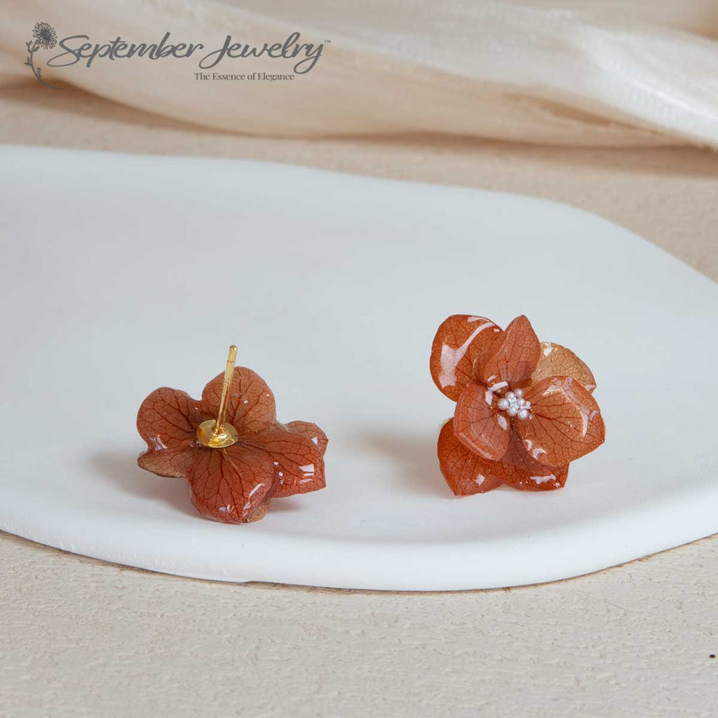 Celebrate the essence of fall with the Double Petal Autumn Orange Hydrangea Stud Earrings—your perfect accessory for a romantic seasonal look!