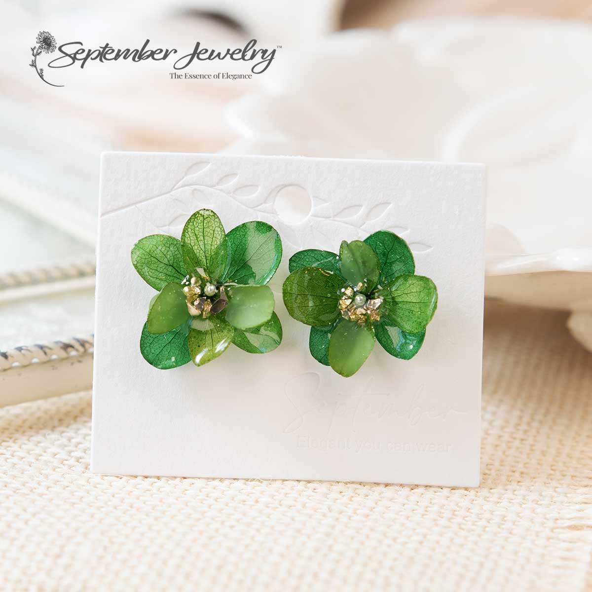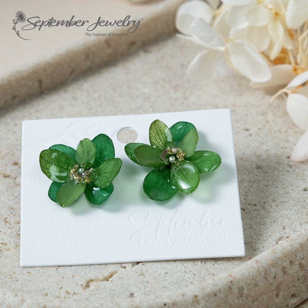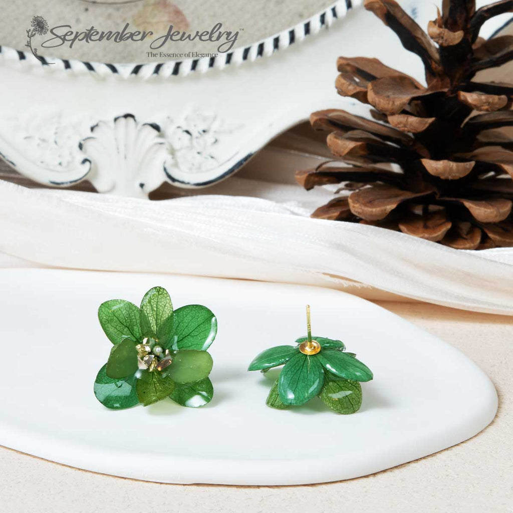 Enhance your style with these exquisite Double Petal Green Hydrangea Stud Earrings. Crafted from real dry hydrangea flowers coated in resin, these unique earrings feature a stunning two-tone design that beautifully captures the essence of nature. The double petal arrangement adds depth and dimension, creating a fresh and eye-catching look.
