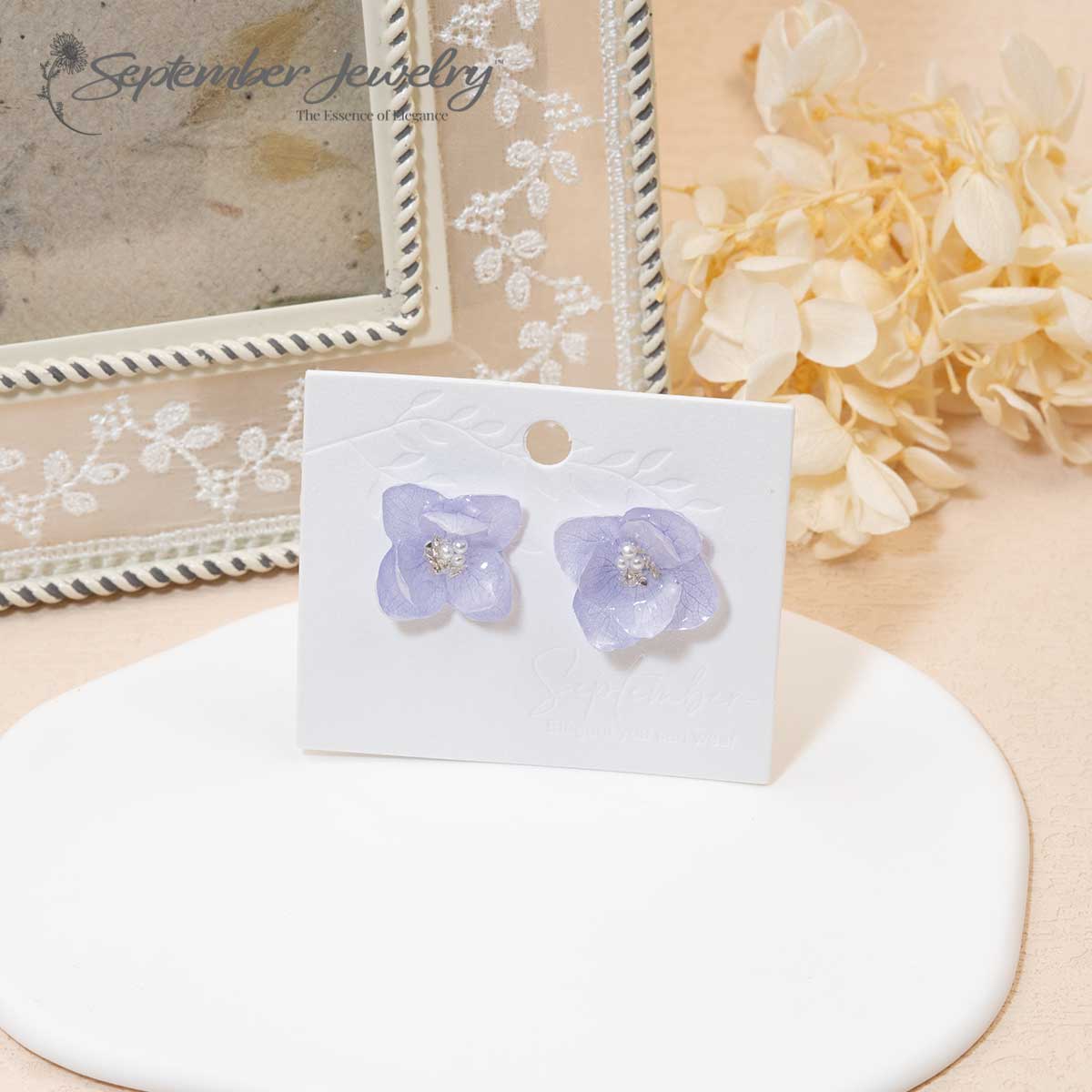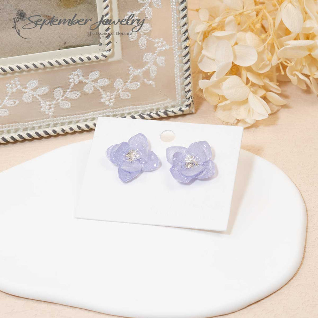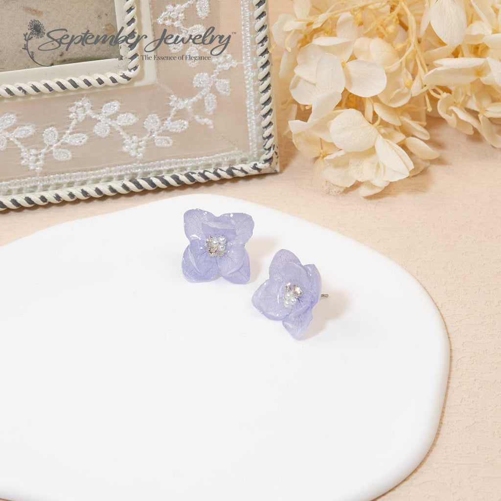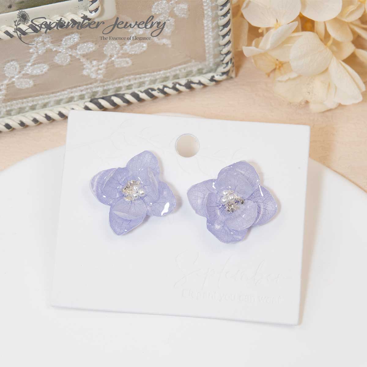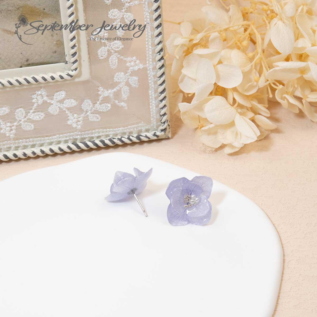 Double Petal Lavender Hydrangea Earrings – Real Flowers, Stainless Steel, 3/4"
