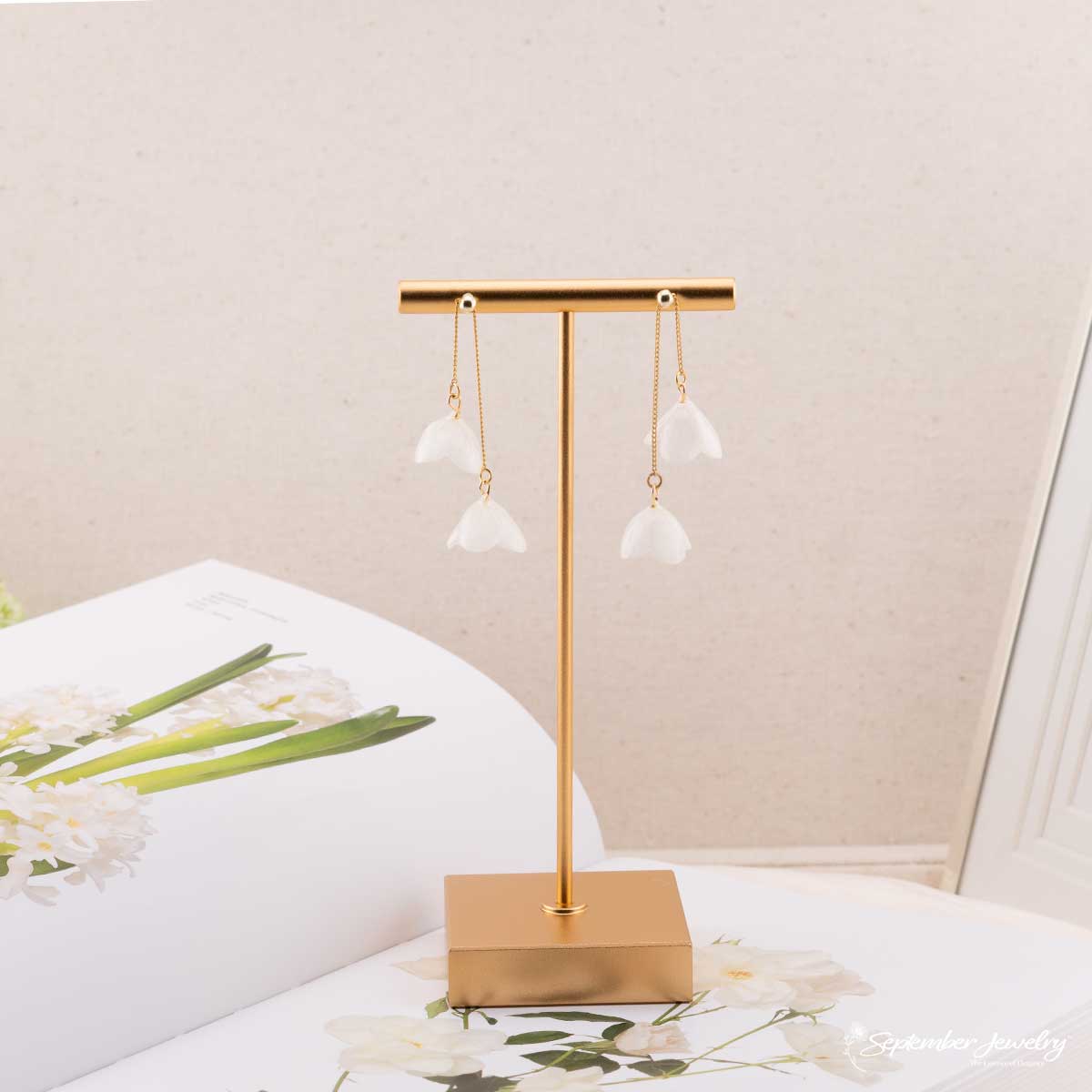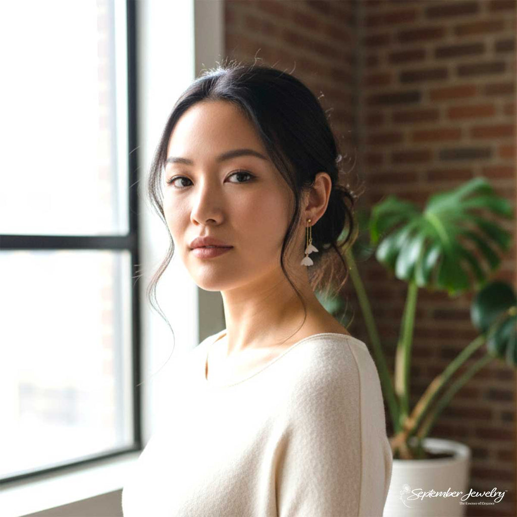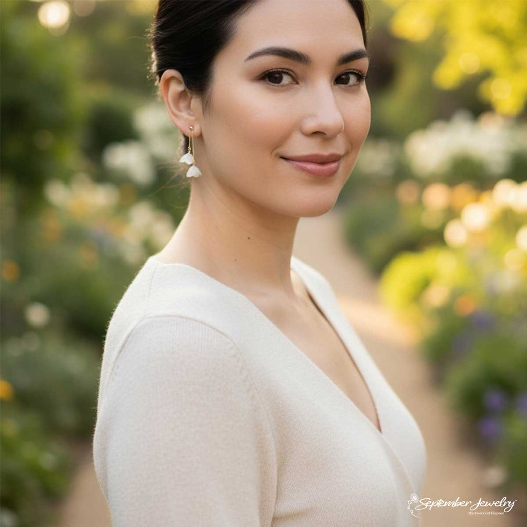 The dual bloom design and adjustable chain add an elegant sense of dimension and motion. These earrings adapt beautifully to any style—shortened for refined minimalism or extended for romantic flair. Their gentle glow and light texture make them a standout for both day and evening wear.