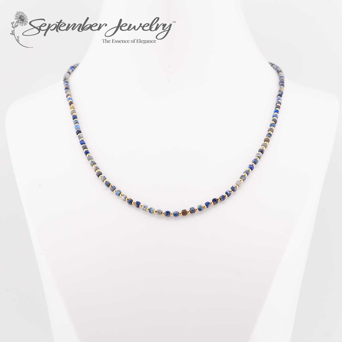 Lapis Lazuli Gemstone Necklace with 14k Gold Plated Beads and Clasp – 16 inch + 2 inch Extension