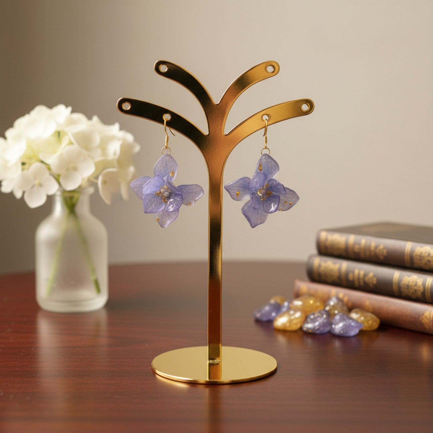 Soft and graceful, these lavender hydrangea earrings capture the fleeting beauty of blooming petals. Their delicate hues and translucent texture create an ethereal glow, evoking the gentle charm of spring mornings and fresh blossoms touched by light.