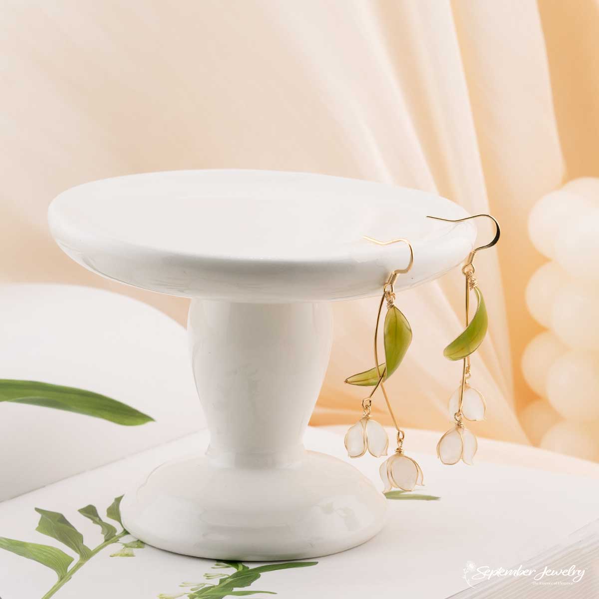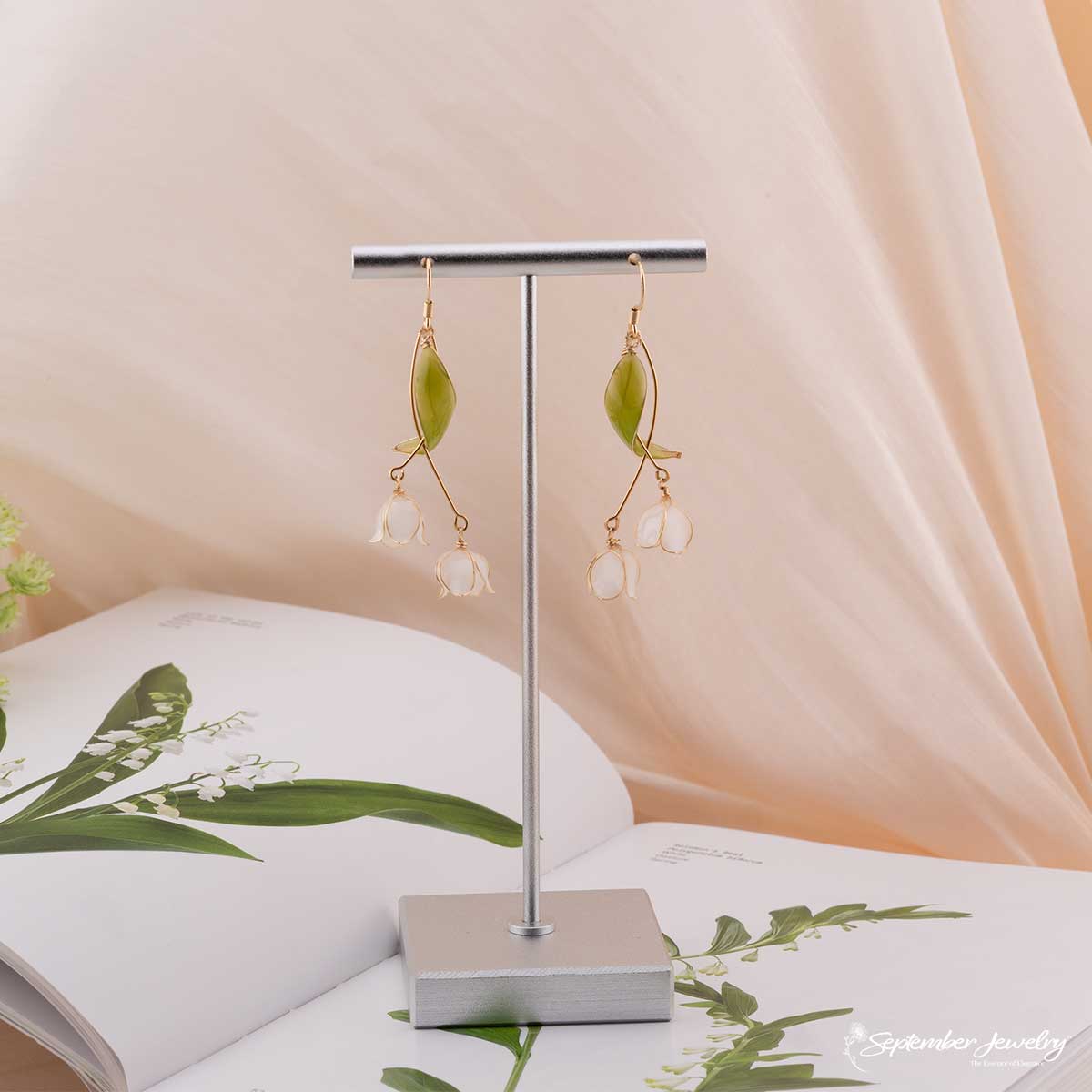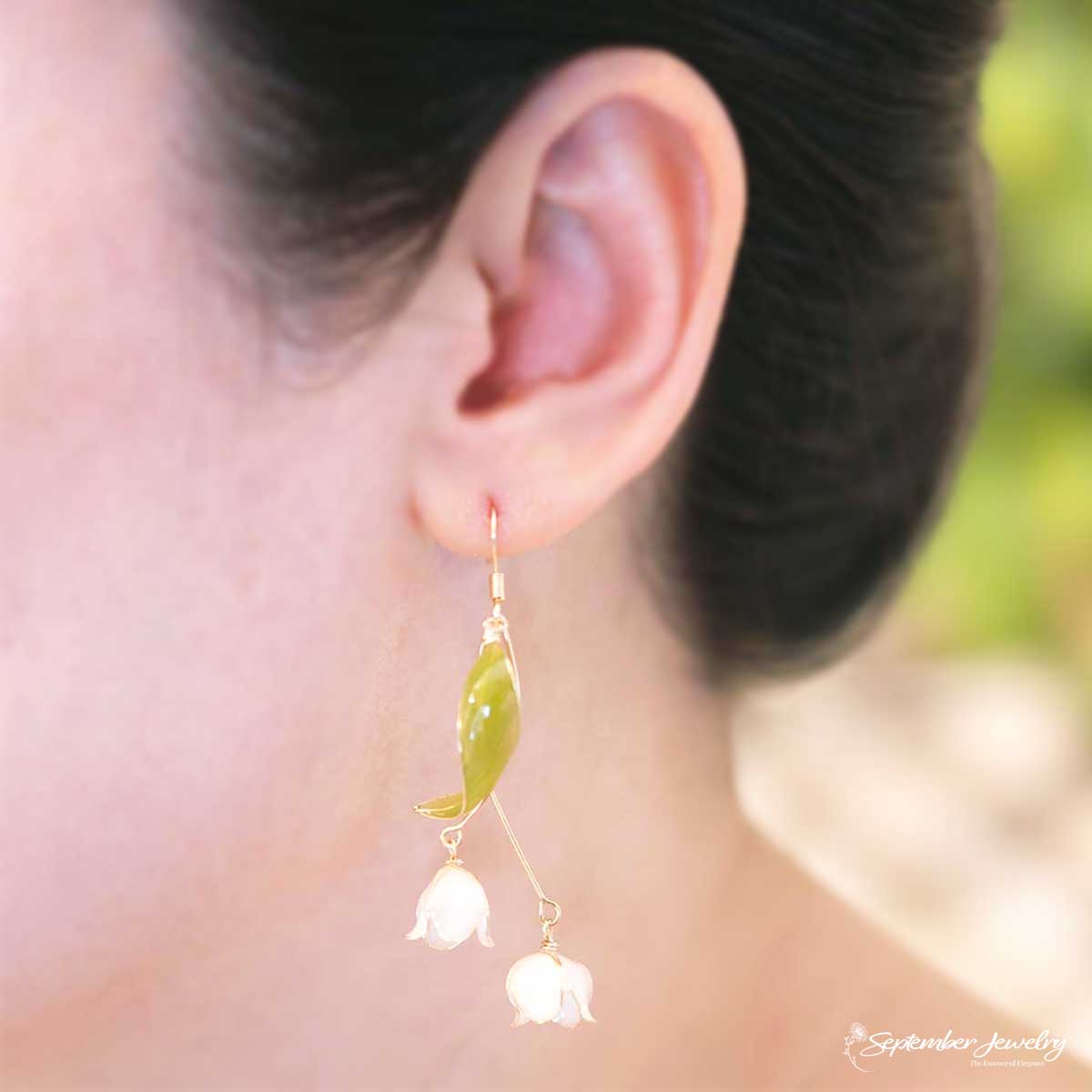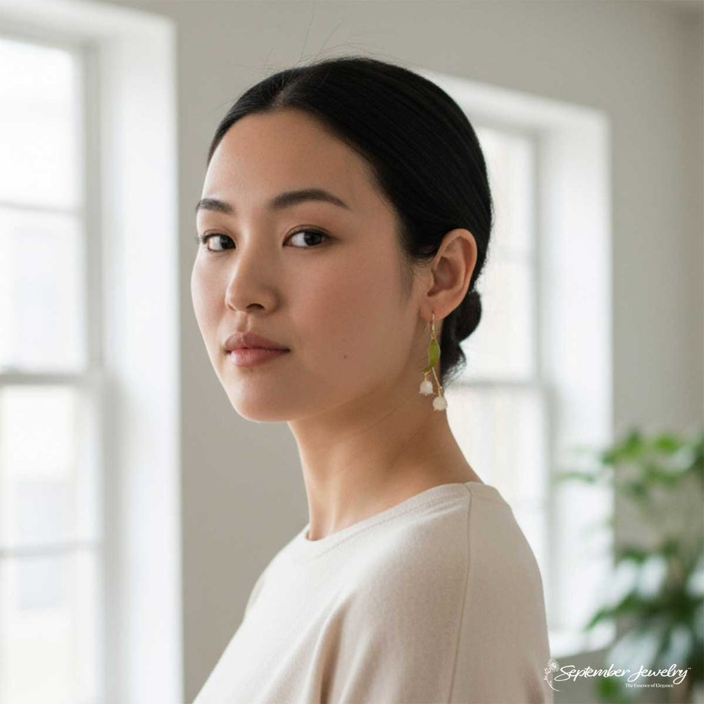 The lily of the valley symbolizes purity, renewal, and happiness. Often associated with new beginnings, it is believed to bring serenity and hope, making these earrings a gentle reminder of grace in growth and change.