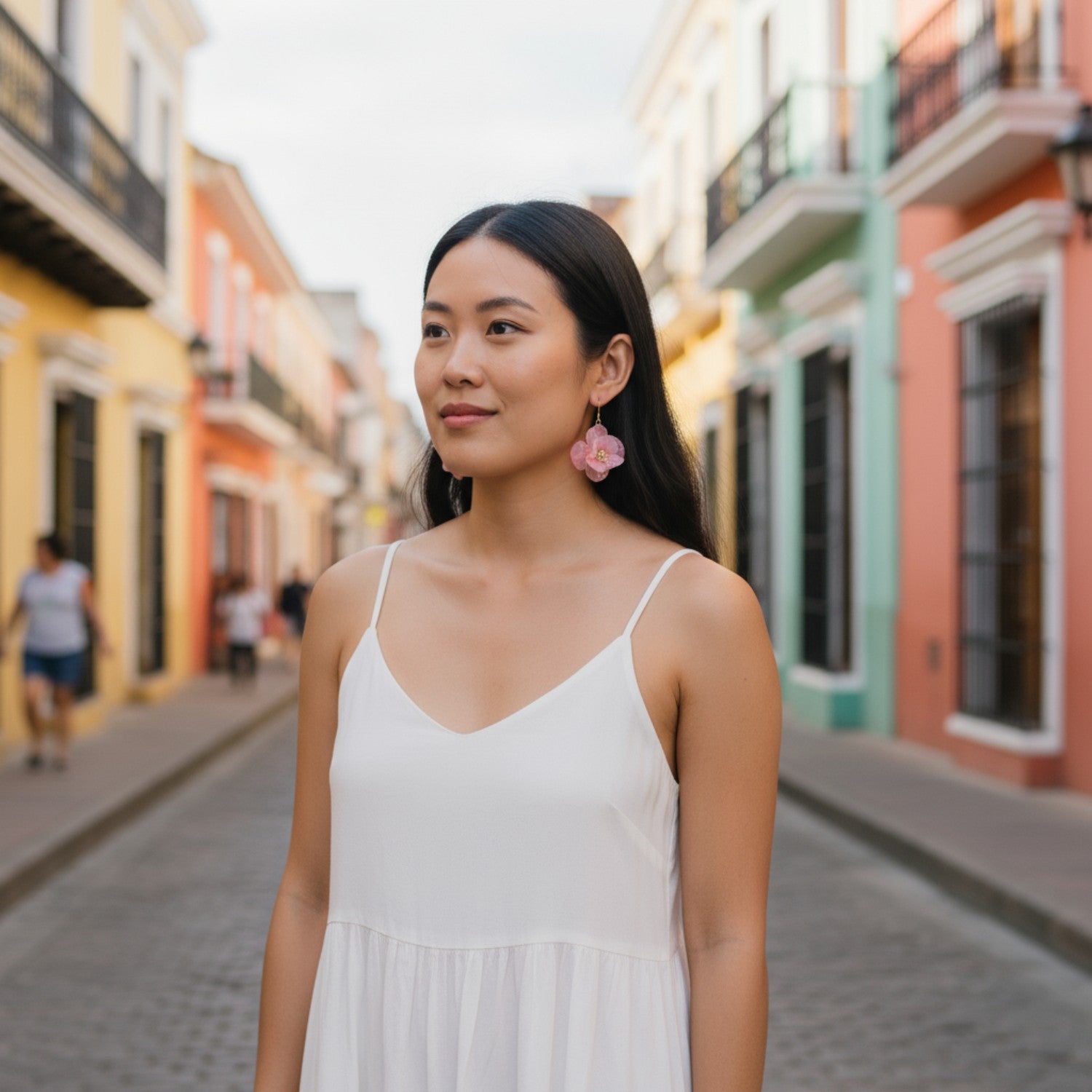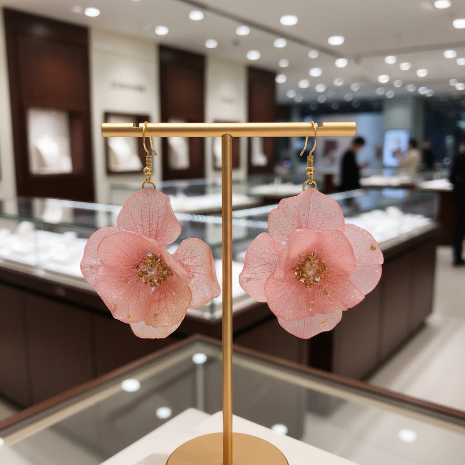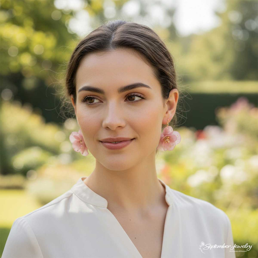 These earrings capture the delicate harmony of color and form—soft pink petals framed by the subtle glow of a pearl. Their graceful movement and romantic tone make them ideal for special occasions, while their natural texture adds effortless charm to everyday style.