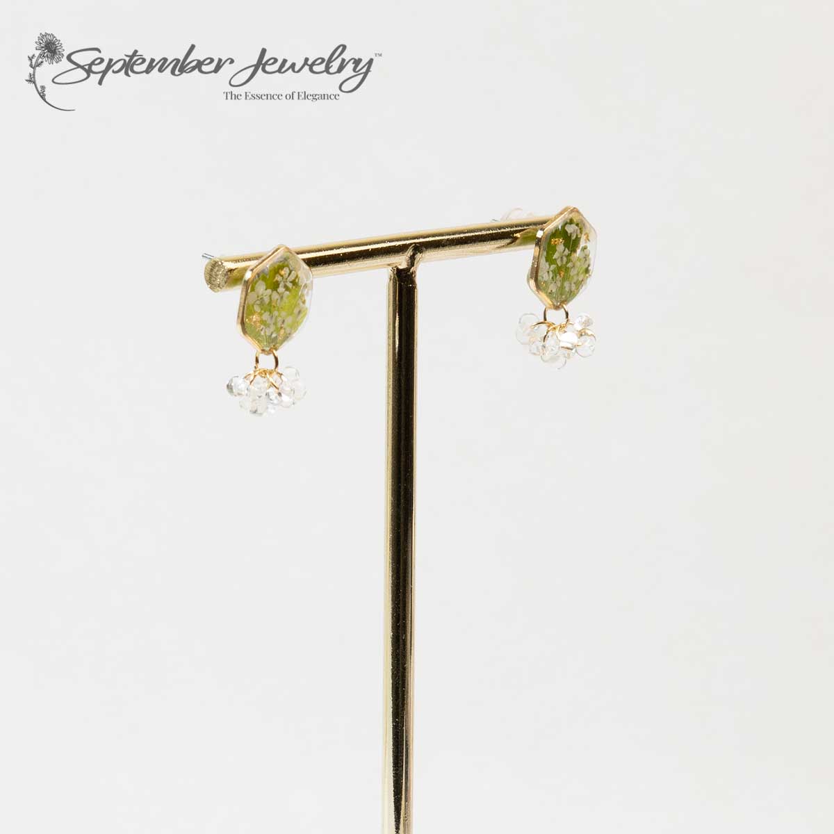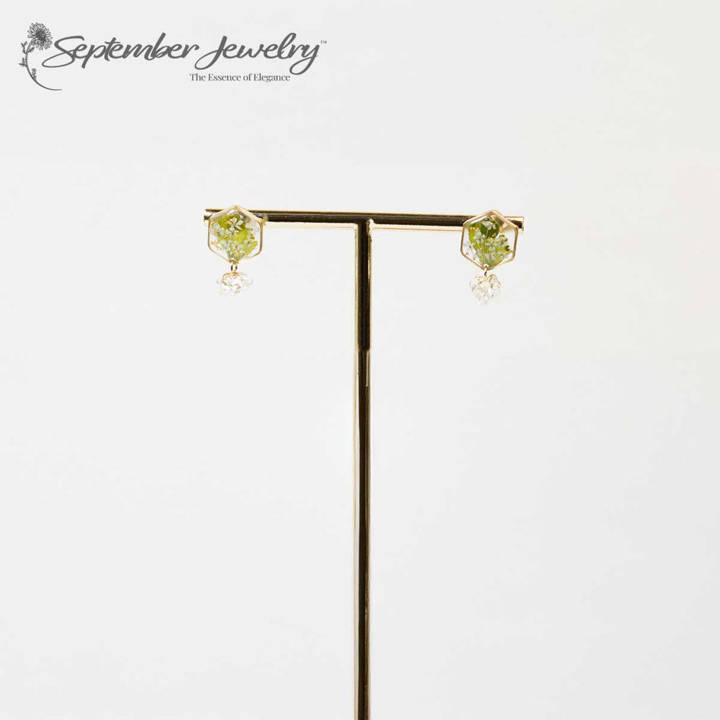 Delicate and versatile, these Short White Lace Rhombus Drop Earrings are a graceful blend of vintage charm and modern minimalism. Made with light pink resin and real white lace flowers, each rhombus-shaped earring captures the beauty of nature in a soft, feminine design.