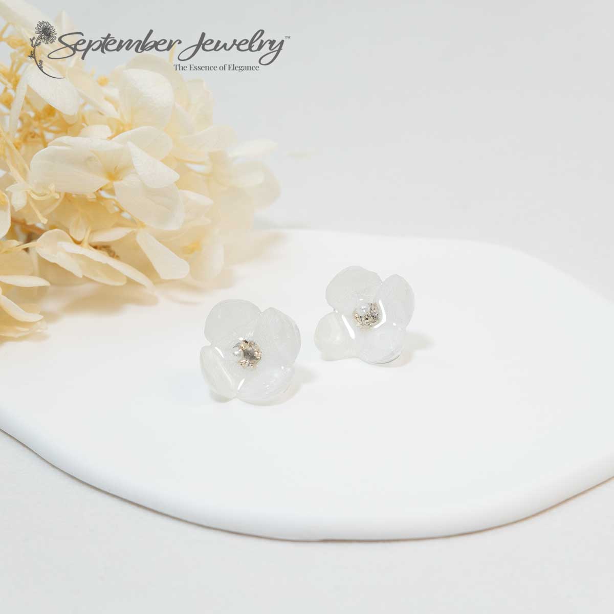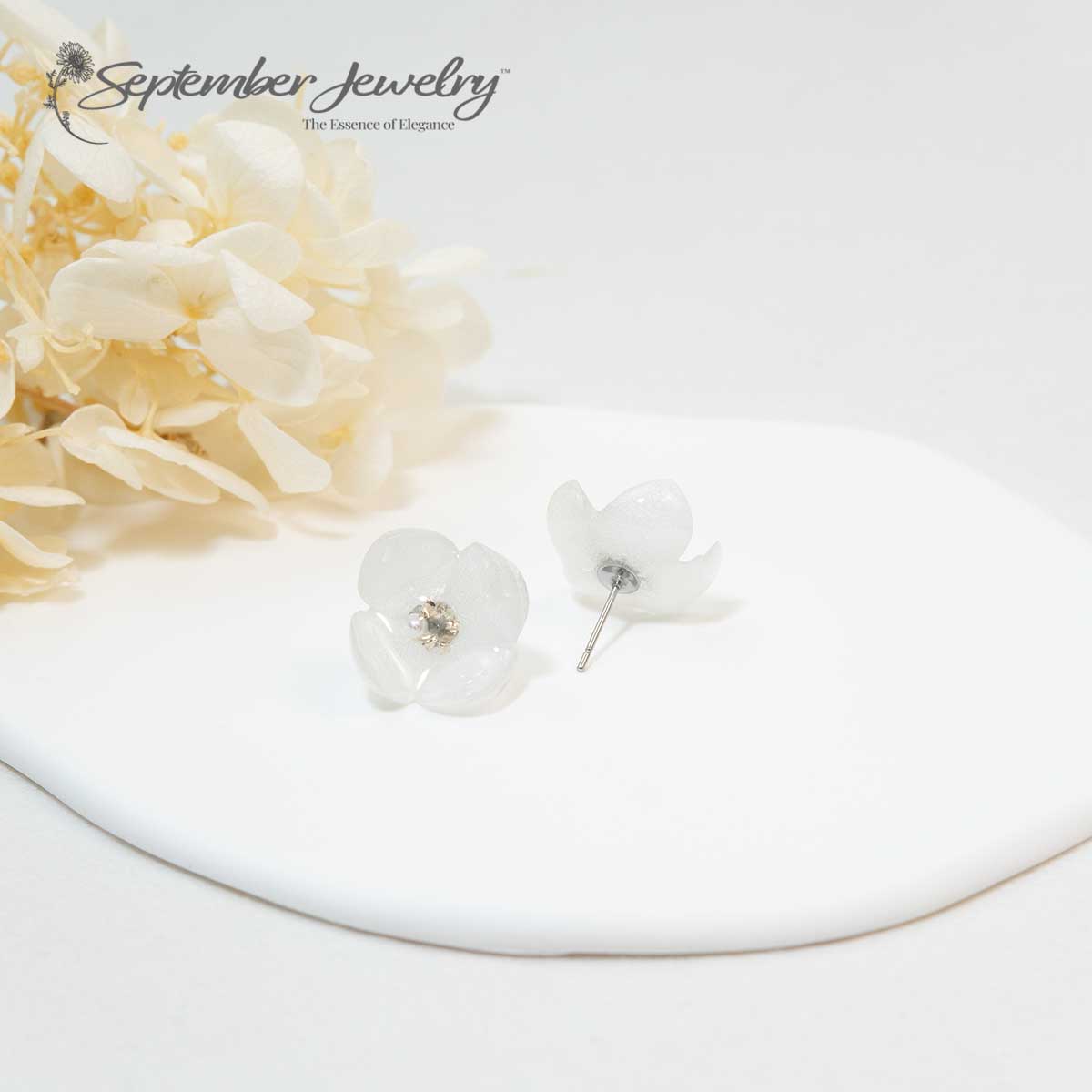 Single Petal White Hydrangea Earrings – Real Flowers, Stainless Steel, 0.7"