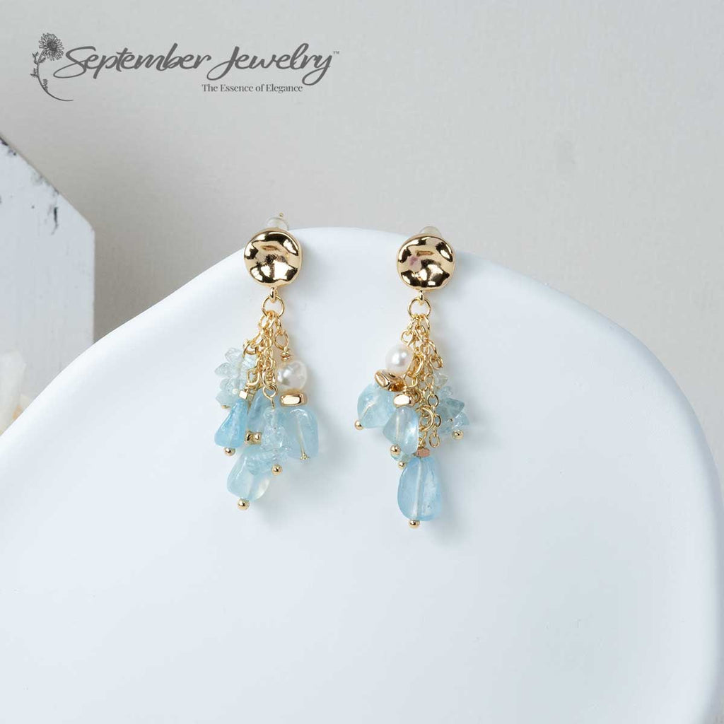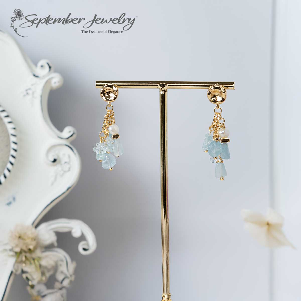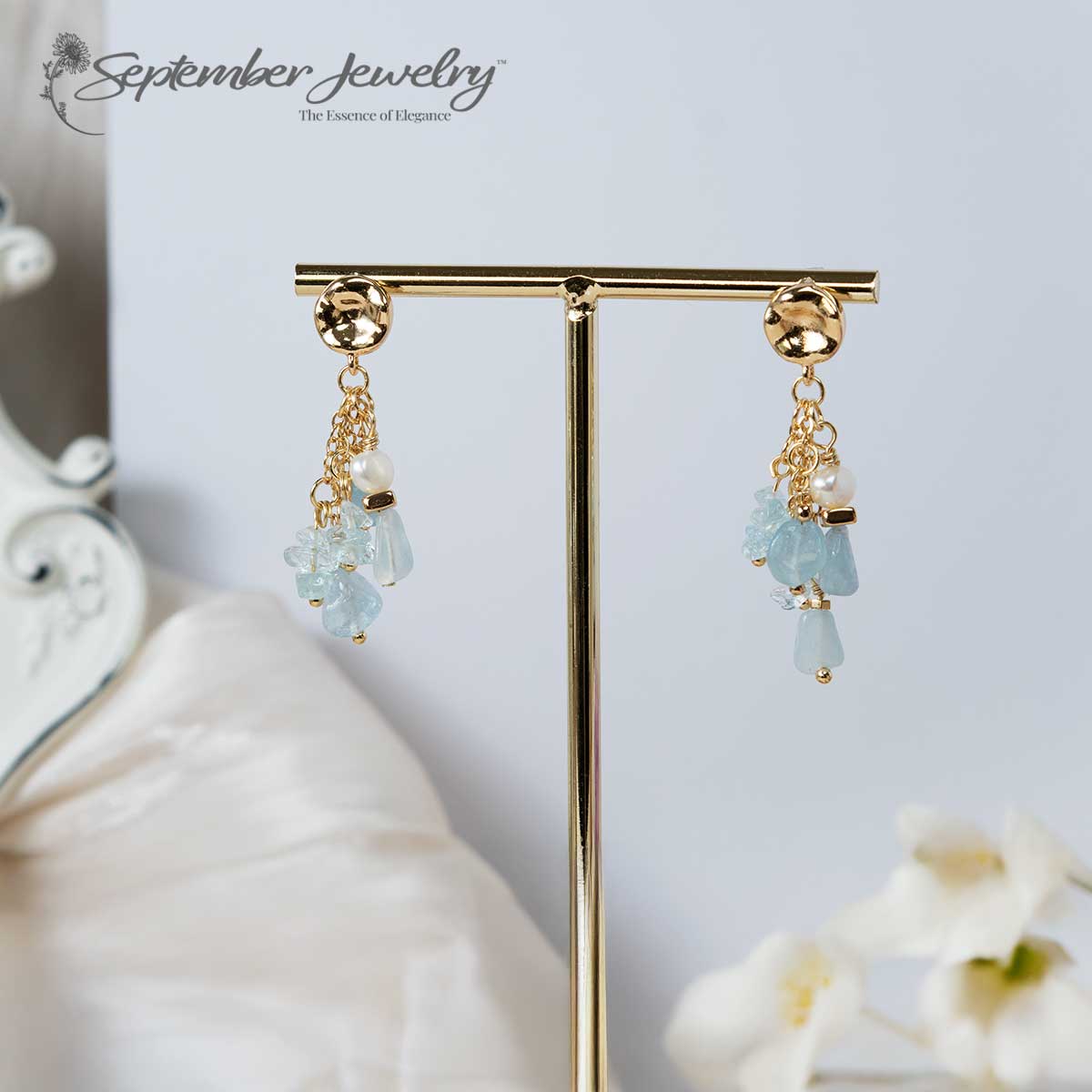 Strings of Aquamarine & Freshwater Pearl Earrings