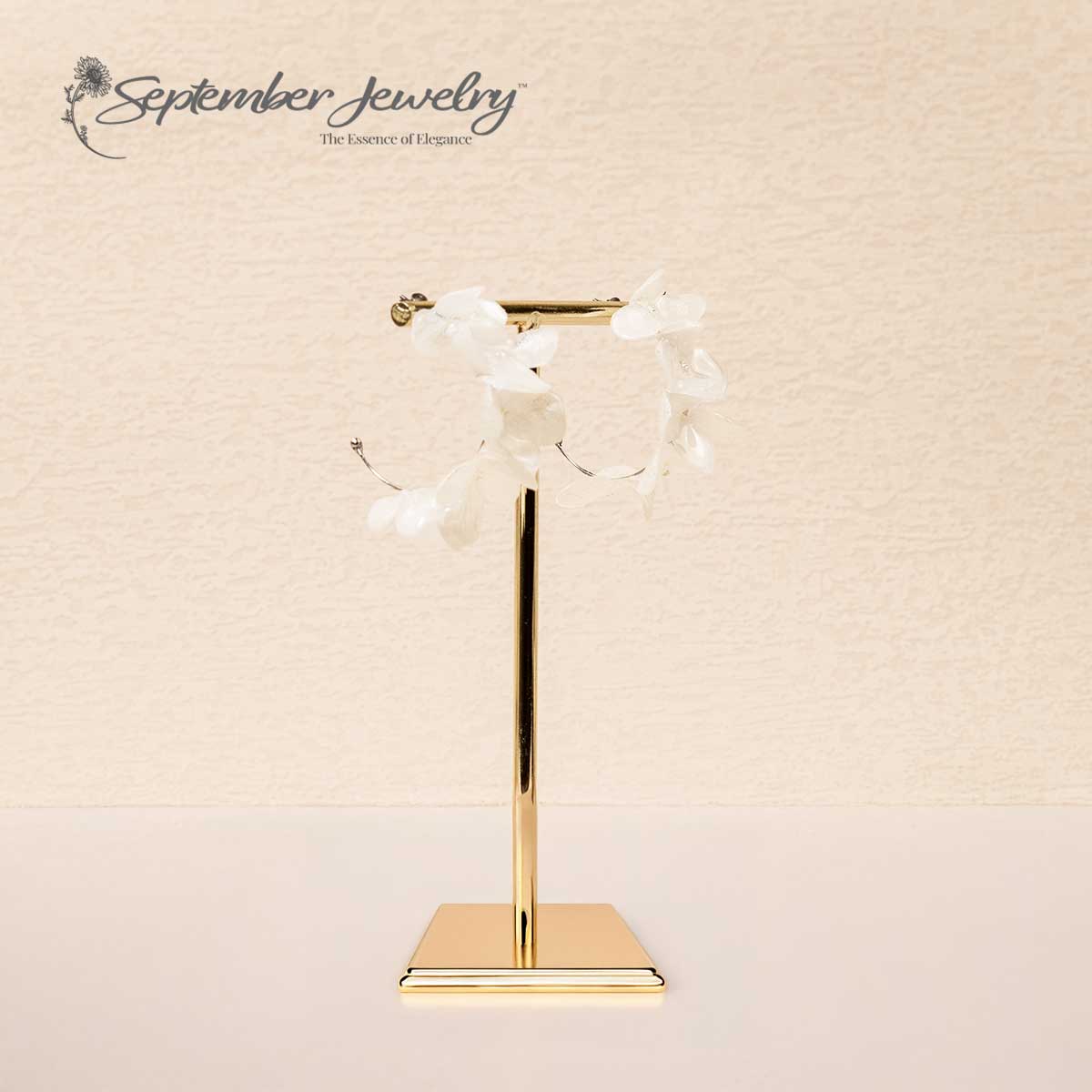 Delicate and dreamy, these C-shape hoop earrings are handcrafted with four real white Hydrangea flowers, preserved in crystal-clear resin to capture their natural elegance. Suspended from Stainless Steel hooks, the earrings offer lightweight comfort with a graceful 1.5" drop — perfect for weddings, garden parties, or everyday floral charm.